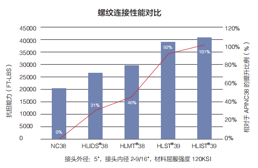 ·超高的抗扭能力,與同規(guī)格的 API 接頭相比,抗扭能力可提高 70% 以上;